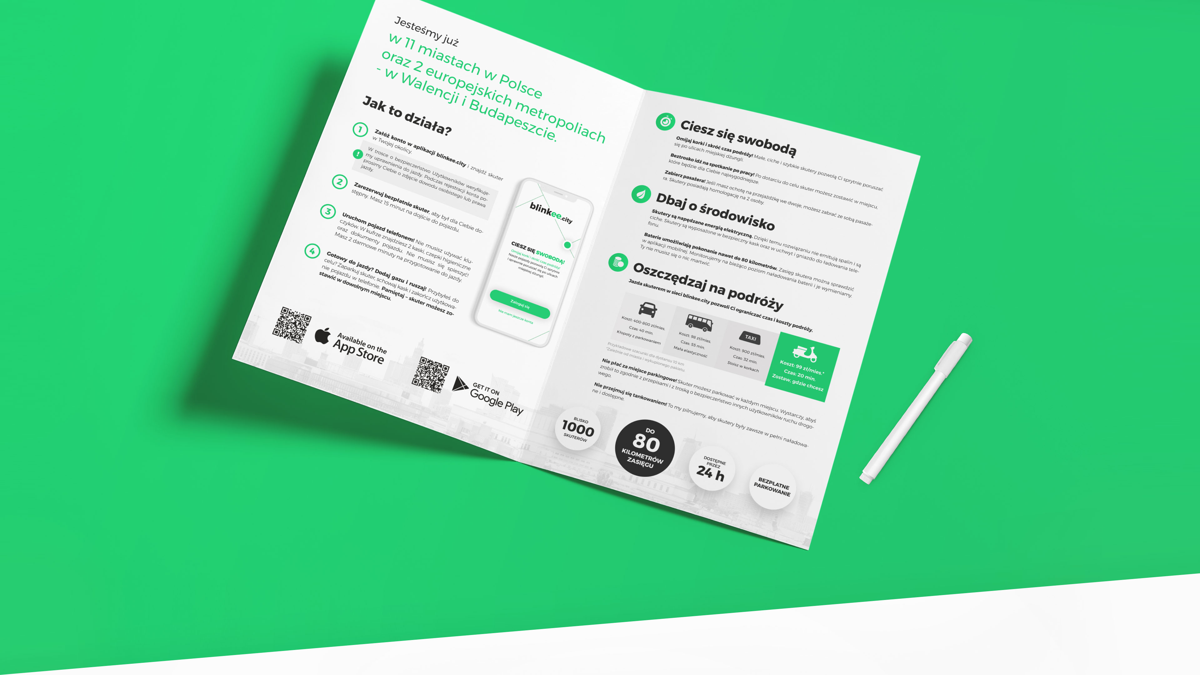 Dla sieci blinkee.city zaprojektowaliśmy materiały promocyjne: billboardy, rollupy, foldery promocyjne oraz grafiki pod kampanie internetowe (Facebook, Instagram, Google Ads).