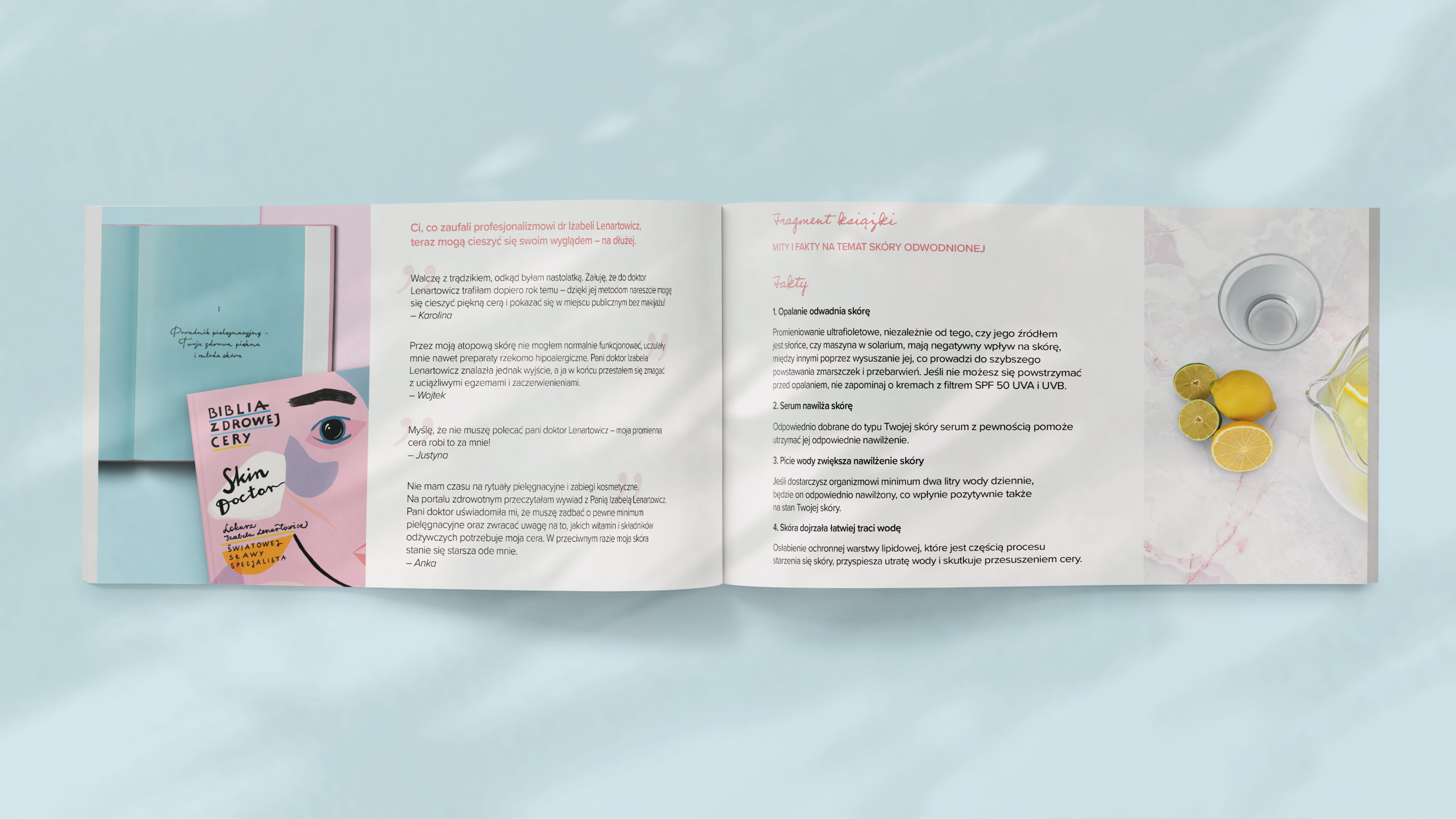 Dla wydawnictwa ZNAK zaprojektowaliśmy materiały promujące książkę „Skin Doctor. Biblia zdrowej cery”.